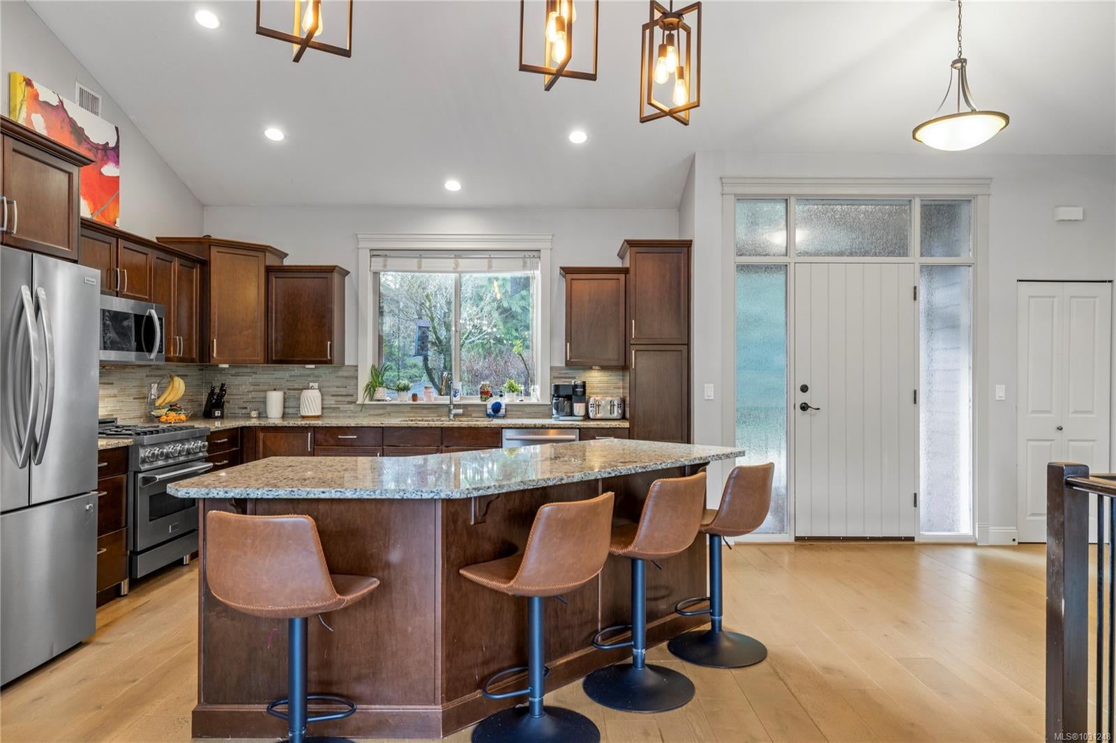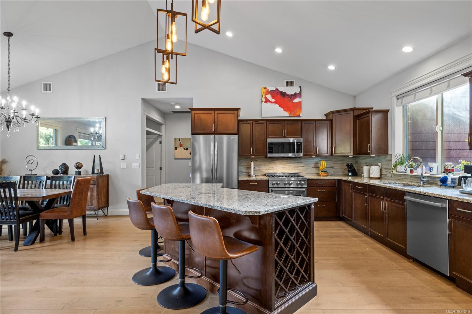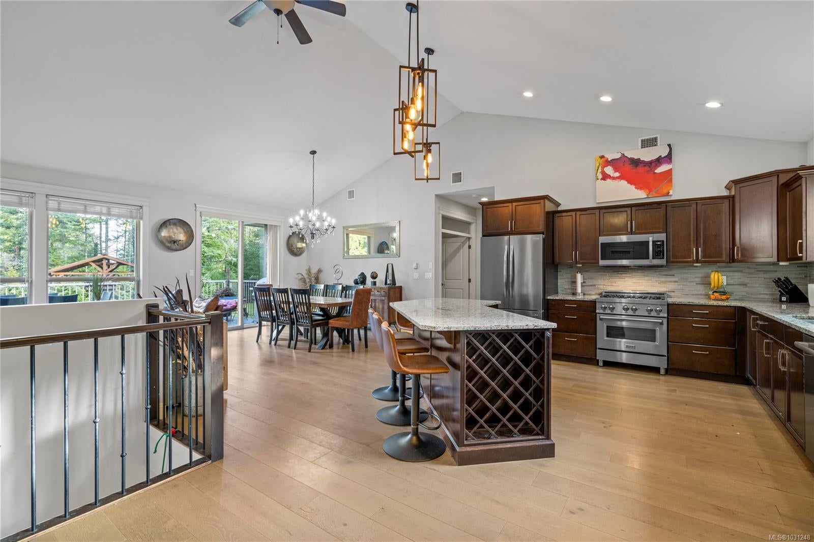 This picturesque property offers an exceptional blend of luxury, space, and country elegance. Set on 2.5 acres; the impressive 6-bedroom main residence is nicely laid out with an open concept living/dining area complete with the primary and two additional large bedrooms. Take in the view of your expansive yard from the large deck perfect for entertaining. Downstairs you will find an additional 3 bedrooms, large rec room and modern bar/kitchenette. This property is complemented by a four-bay detached shop with a spacious 2-bedroom suite above. Equestrian features include a four-stall barn and a fully fenced riding ring, while the landscaped and irrigated grounds create a private oasis. Designed for both relaxation and entertaining, the outdoor living area is a true showstopper, complete with a fireplace for year-round enjoyment in a peaceful, private setting.